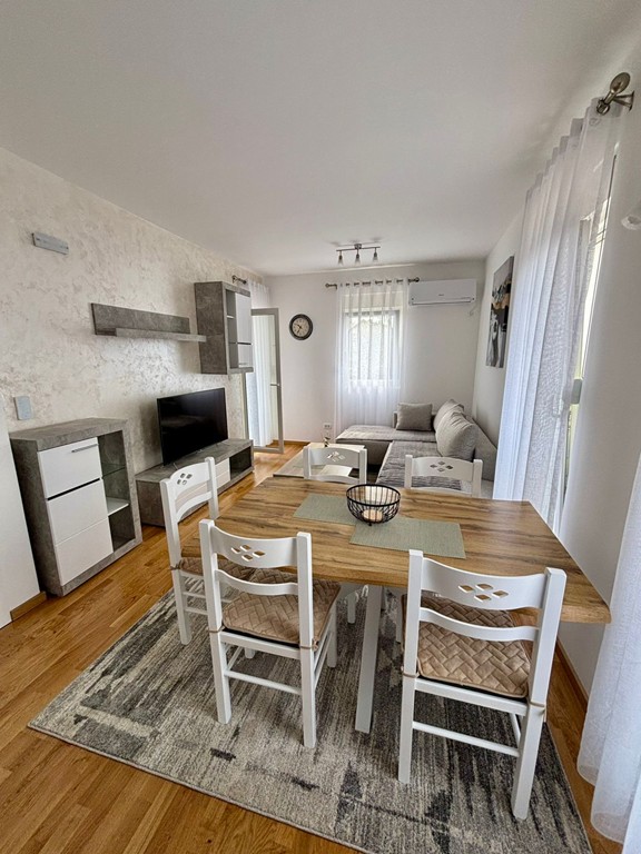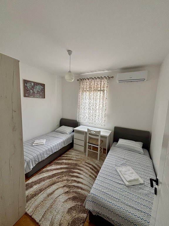 Stan je kompletno opremljen namještajem, bijelom tehnikom i svim potrebnim kućnim aparatima.