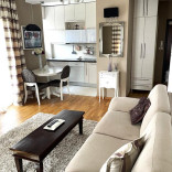 - Strukturu stana cini: ulazni hodnik, kupatio, veliki dnevni boravak sa izlazom na terasu koja ima ostavu i zastakljena je, posebno kuhinja, trpezarija i prostrana spavaca soba sa izlazom na istu terasu.